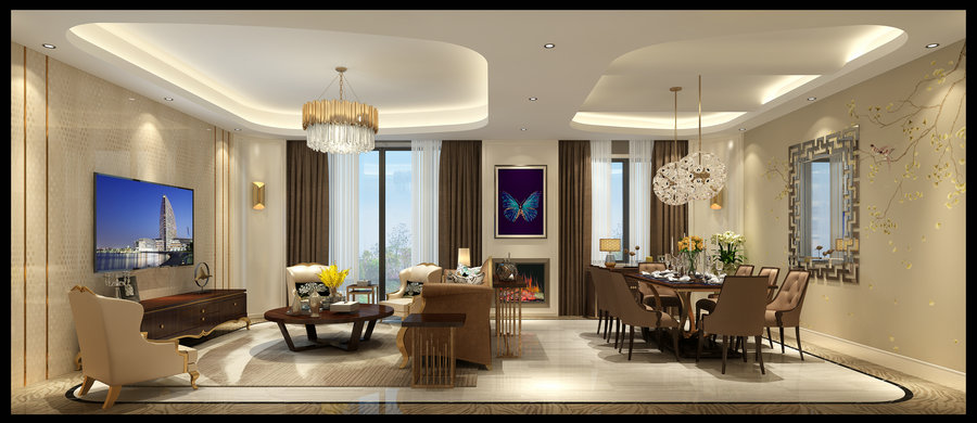 西子城林奇磊420別墅設計裝修客廳