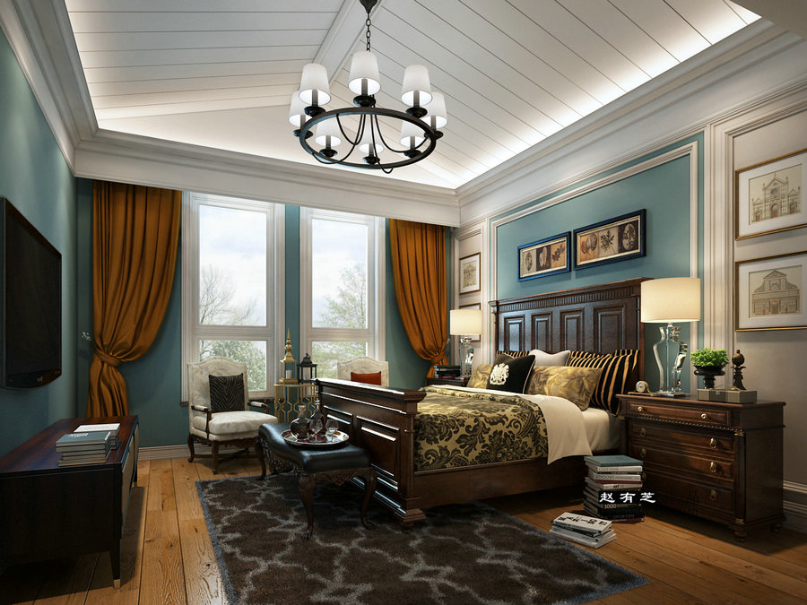 富豪新城200平美式頂躍設計裝修臥室