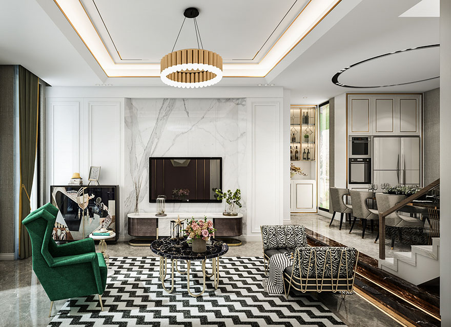 悅水藍山300平現代輕奢別墅設計裝修客廳