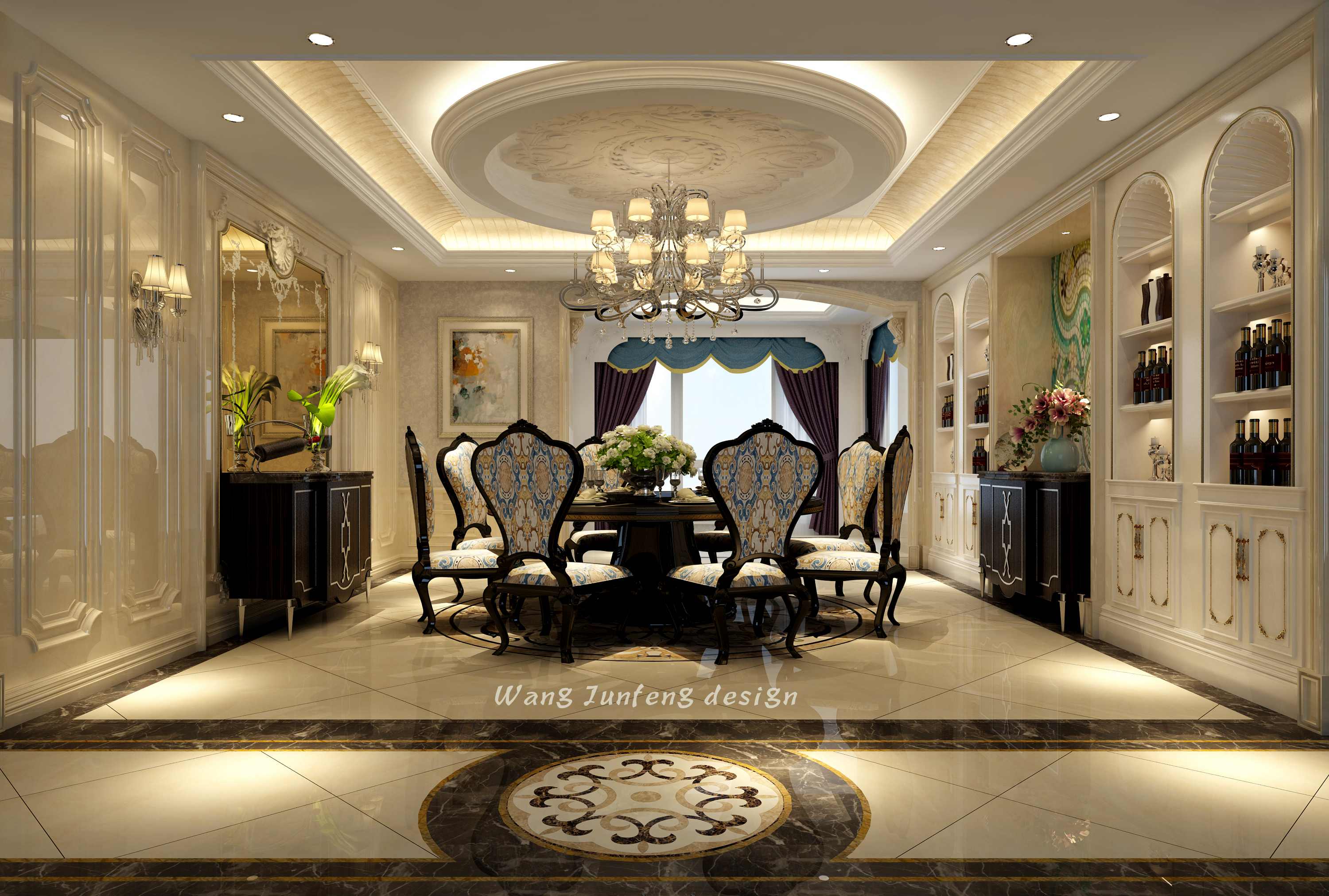 風(fēng)格定位為法式風(fēng)格,造就了其精致、奢華、浪漫的藝術(shù)氛圍。在設(shè)計與施工過程中對每個細(xì)節(jié)尺寸的嚴(yán)格把控以及裝飾上的精雕細(xì)琢,打造了具有強(qiáng)烈巴洛克文化的藝術(shù)空間。在空間格局上的創(chuàng)新與改造,以及實現(xiàn)對不同家庭成員的專屬定制又使家人們可以舒適的在室內(nèi)生活,通過設(shè)計手段實現(xiàn)了主人生活的便利以及文化情懷。
