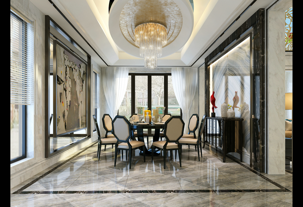 保利拉菲莊園500平港式別墅設(shè)計(jì)餐廳
