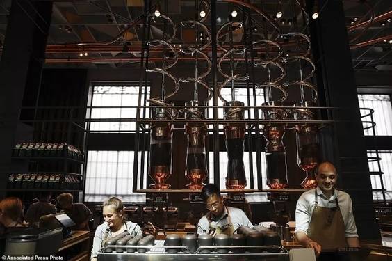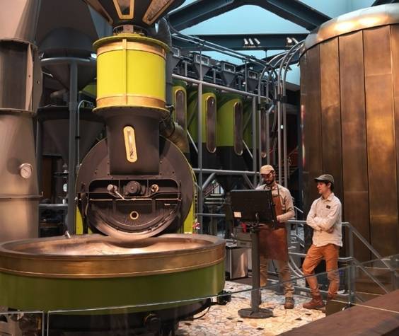 在這個(gè)樂(lè)園的中央擺的不是提供給顧客休閑喝咖啡的座位,而是有一個(gè)巨大的咖啡機(jī)在打磨咖啡豆。