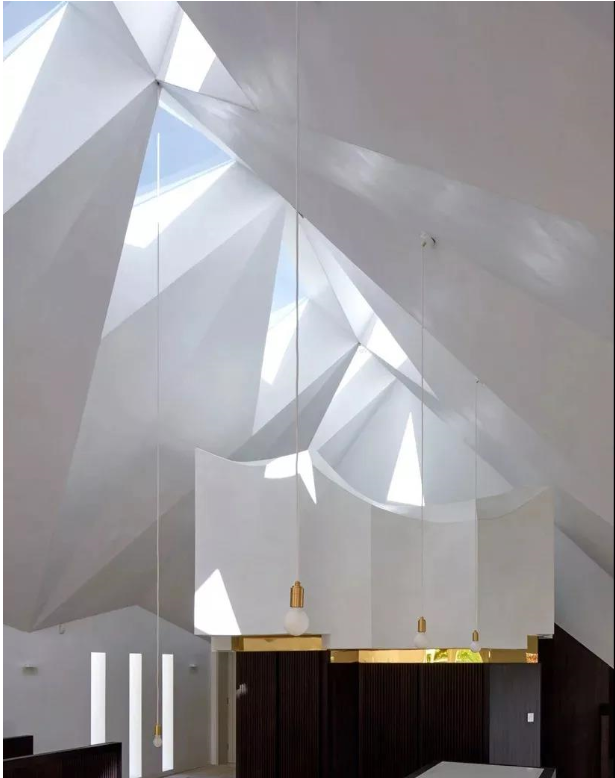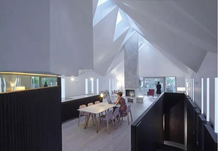 設(shè)計(jì)師在暨有教堂結(jié)構(gòu)下改建了一個(gè)新住宅,重新鋪敘新地面及天花板設(shè)計(jì)前衛(wèi)感十足的住宅。尖頂天花板不僅極富前衛(wèi)現(xiàn)代感,也使空間顯得高挑寬敞,舒適自在沒(méi)壓力。當(dāng)光線(xiàn)從幾何切割的天花板流瀉而下,空間中壟罩著柔美清新氛圍,而光與影也交織出變化多端的構(gòu)圖,創(chuàng)造唯美豐富的層次感。至于外部則使用原有教堂的再生磚,屋頂以當(dāng)?shù)匕鍘r打造富含人文氣韻的視覺(jué)印象,增添一抹知性美感...